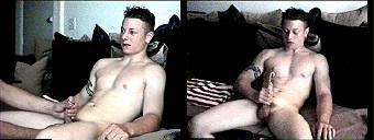 AXELAxel laughs nervously as he strips off his clothes and the session begins. His cock quickly hardens and after I pump up the volume on the porn flick I leave him alone to work himself over. When I return to the room and grab Axel's cock to measure it,he pops his load! He's soon ready to go again and this time he stands up and watches himself in the mirror (check out the hot tattoos on his arms). Axel can barely control himself and soon spews out a second load. Gleefully he exclaims,''See,I'm a sex freak!'' |